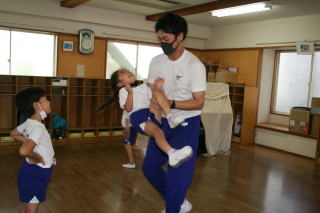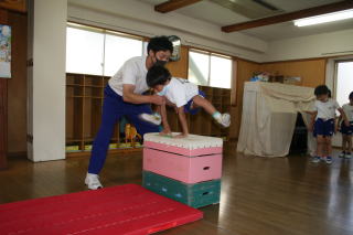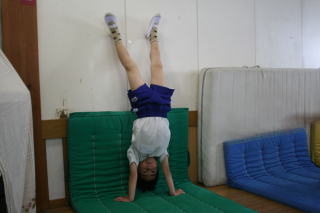 ※年長児は逆立ちに挑戦。なんと、この体勢から腕立て伏せが出来ました。